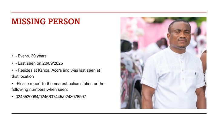 A 39-year-old man, Evans Kwame Abofla, has been reported missing after leaving his residence at Kanda, a suburb of Accra,…