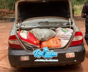 They were intercepted while allegedly transporting the items in a Toyota saloon car with registration number GR 6147-11. The incident attracted a large crowd.