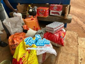 Items retrieved from the vehicle included bags of rice, gallons of cooking oil, cartons of tinned tomatoes, canned fish, milk and other food supplies believed to be intended for students of the school.